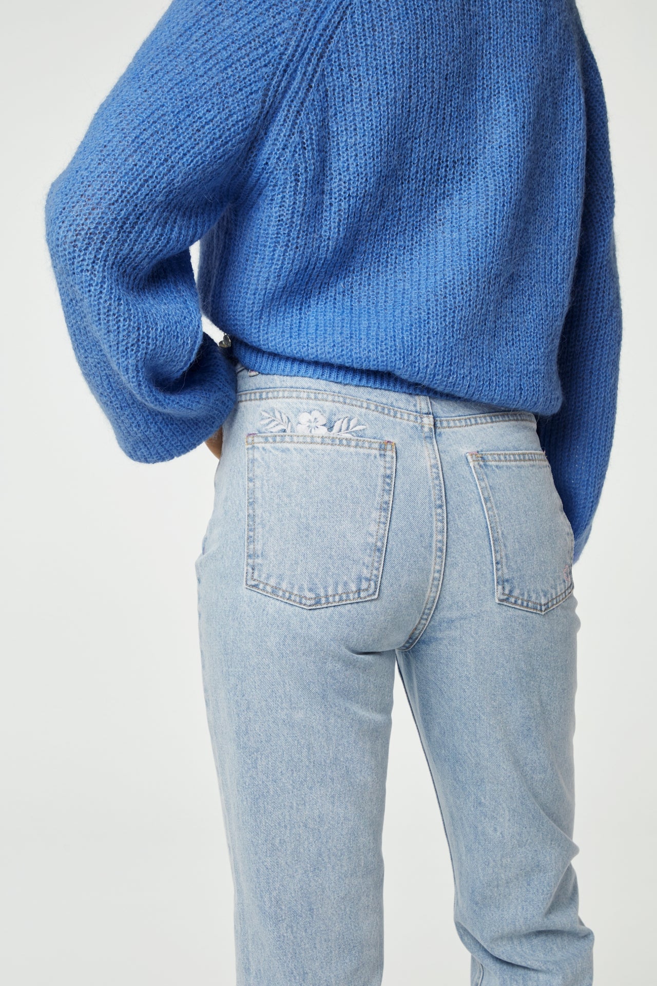 Mid-high denim trousers with the ultimate fit. Lola Straight has a mid-high waist, straight legs and embroidery on the back pockets. Embrace the perfect fit! We’ve recently improved our denim fits, especially in sizes 32 and 33 now offering a more generous fit for more comfort.