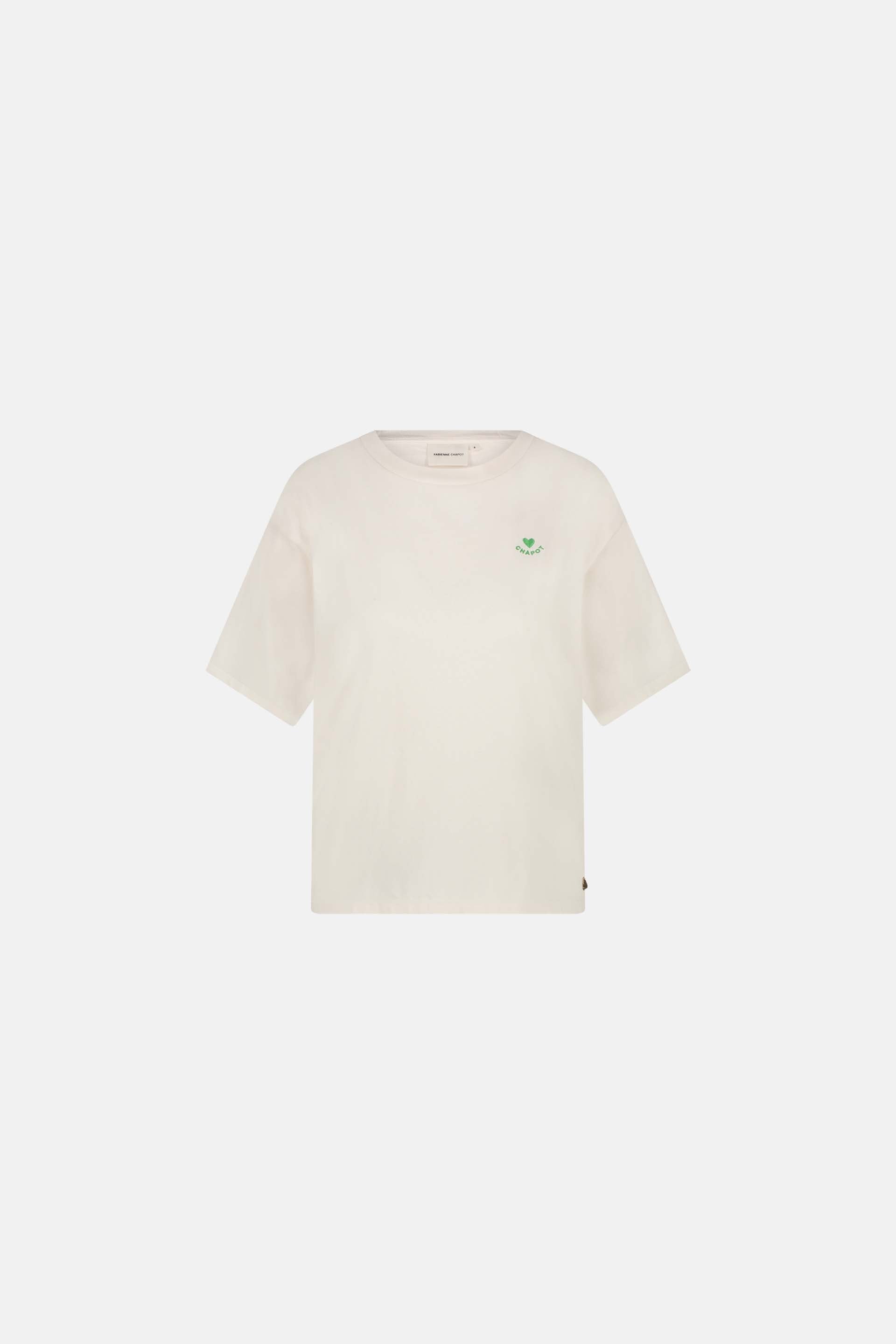 This cream-white T-shirt in a regular fit is made from 100% cotton amd features a small heart icon and logo. Pair it with your favorite jeans for an everyday look or style it with a skirt for a breezy summer outfit.