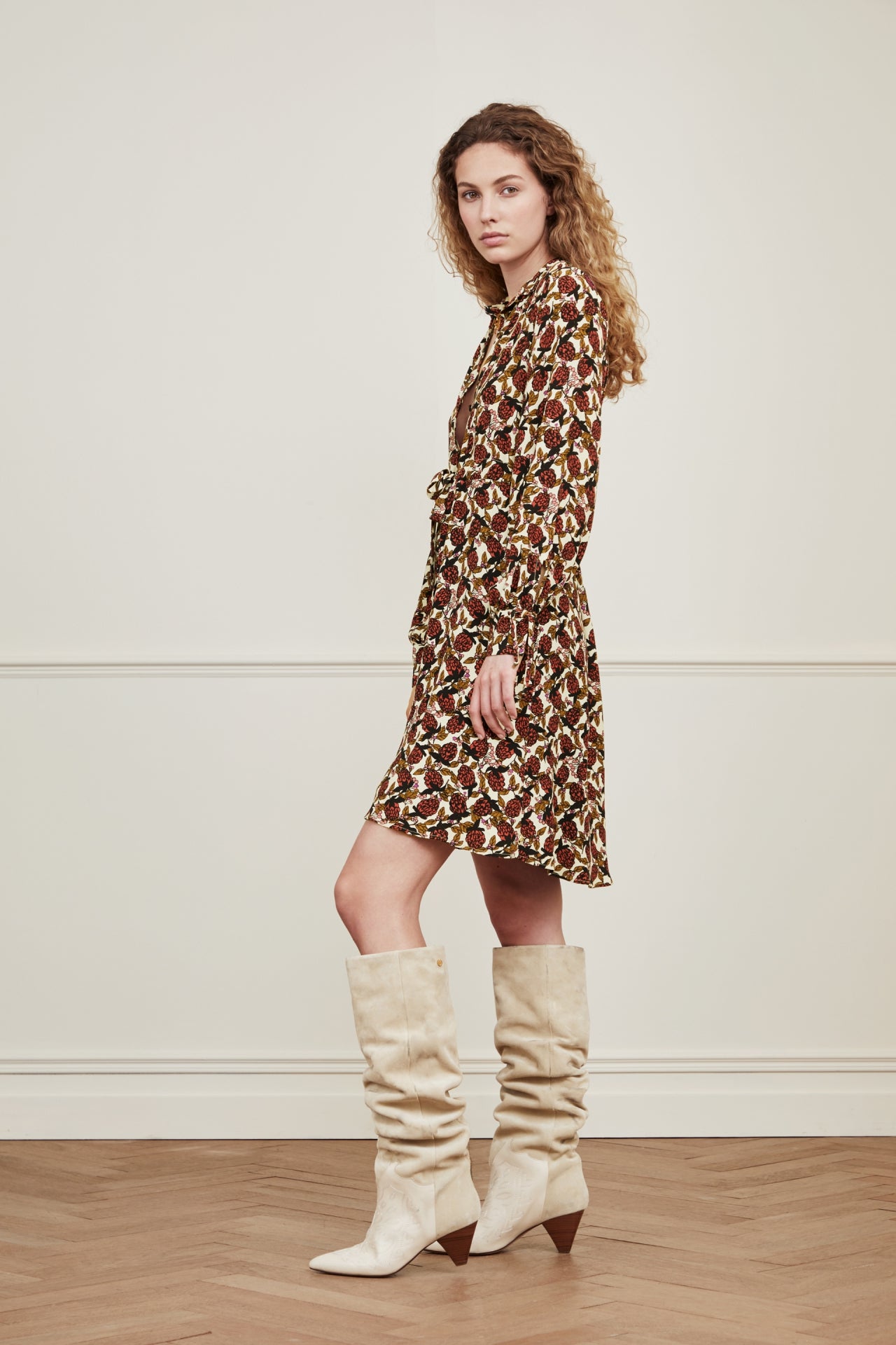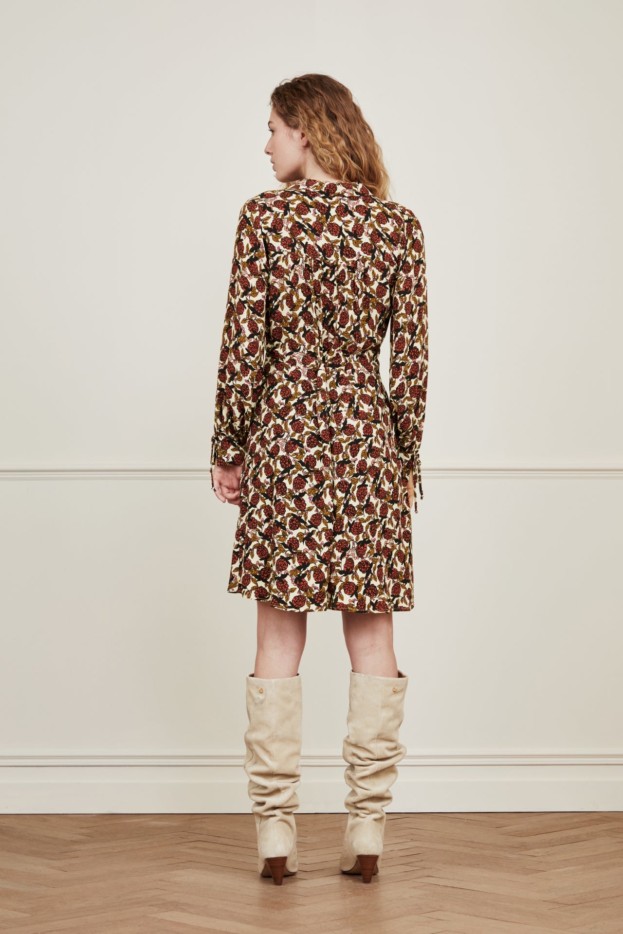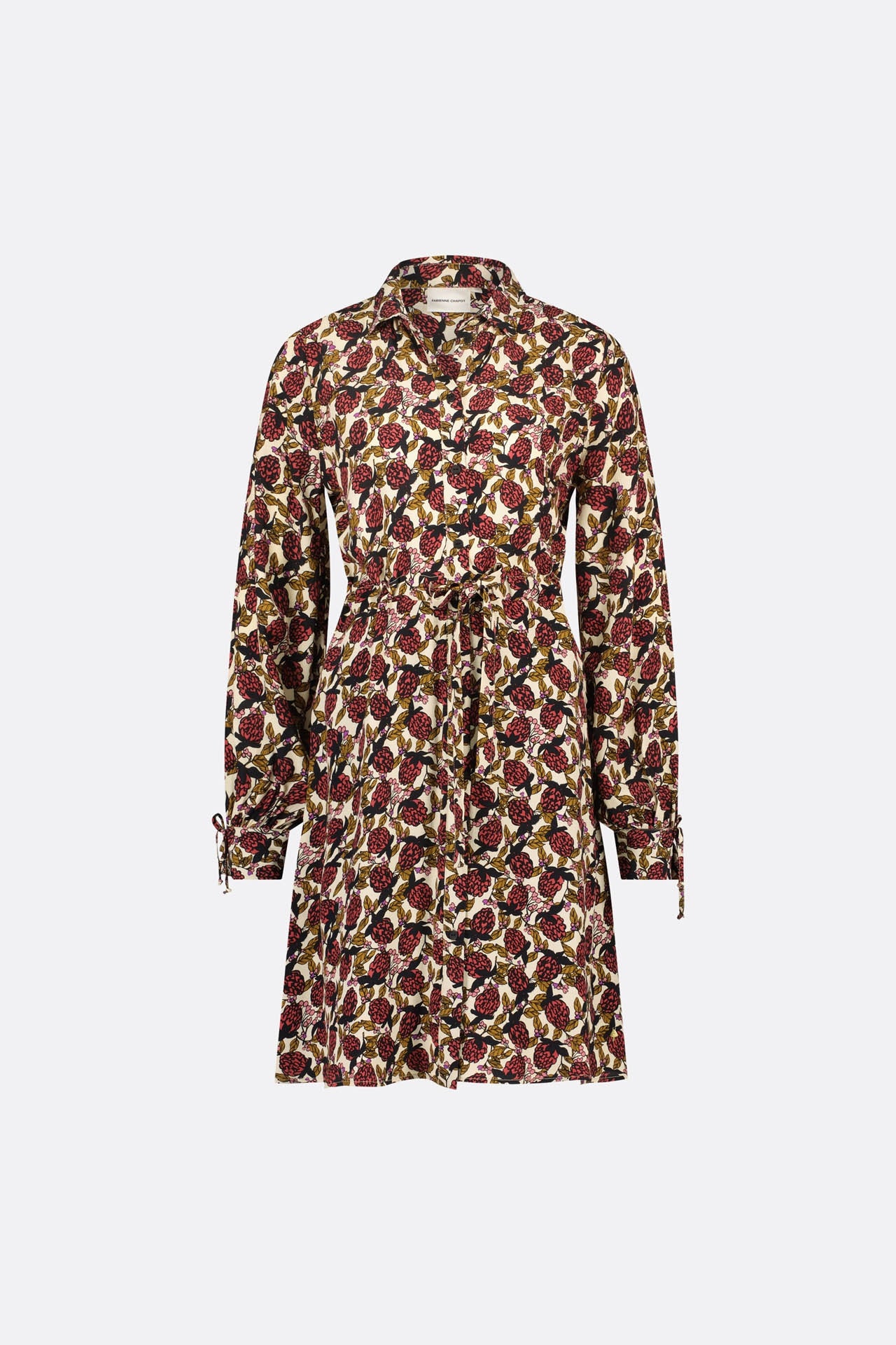 Kurzes Kleid mit klassischem Kragen, Gummizug in der Taille und Schleifengürtel. Das Frida Bow Dress hat einen durchgehenden Knopfverschluss und Schleifen an den Manschetten. Dieser Artikel ist zu 100 % aus LENZING™ ECOVERO™ Viskose gefertigt: luftig, anschmiegsam und strapazierfähig.