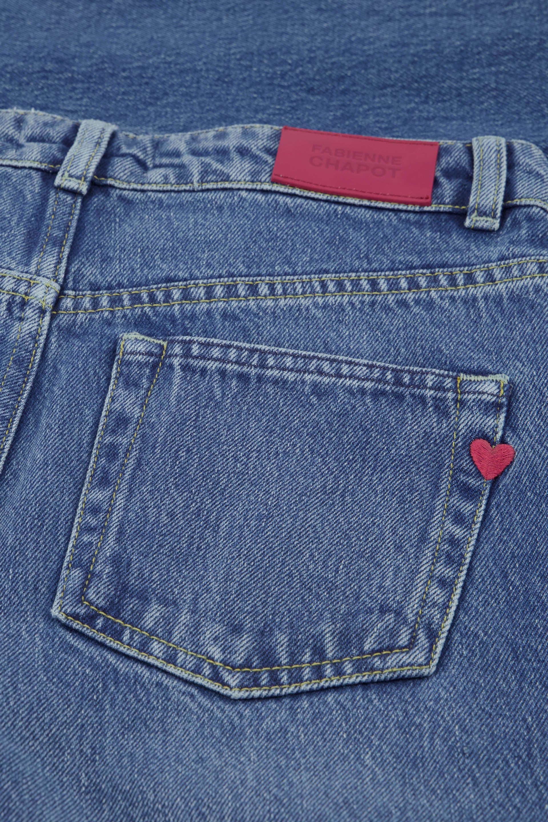 Diese Damenjeans mit weitem Bein, einer extra hohen Taille und einem gestickten Herz auf der Gesäßtasche sind perfekt für jede Gelegenheit. Hergestellt aus einer Mischung aus 44% Baumwolle, 36% Lyocell und 20% recycelter Baumwolle. Kombiniere diese Jeans mit deinem Lieblingsoberteil oder unserer Jane-Bluse für einen lässigen, aber raffinierten Look.