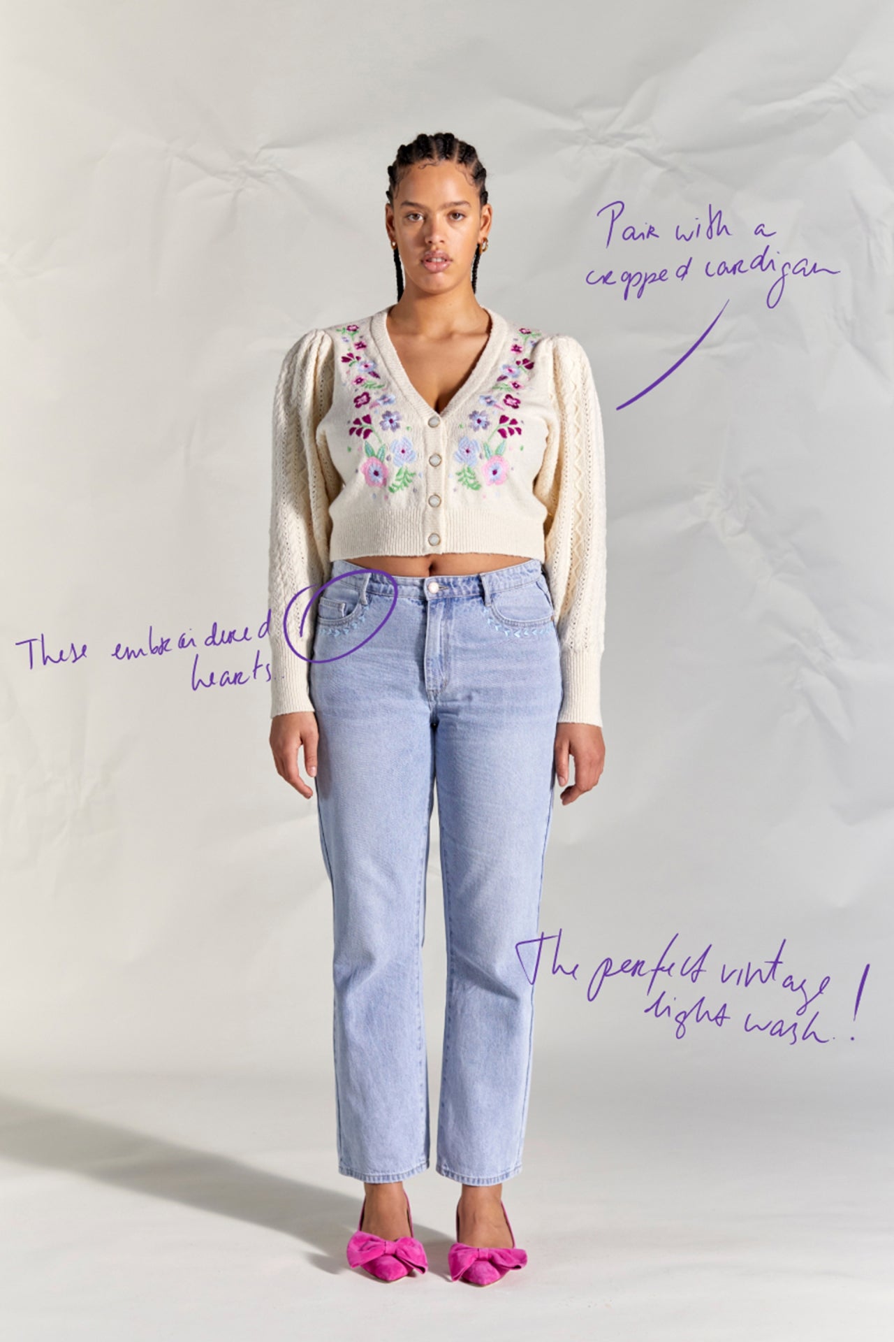 Zu gut, um es für sich zu behalten. Zeit für Denim, die alles andere als konventionell ist. Mid-High Straight Denim-Hose mit der ultimativen Passform und einer mittleren Waschung. Die Lola Straight Leg hat eine mittlere Taillenhöhe, gerade geschnittene Hosenbeine und ist an den Vordertaschen mit aufgestickten, kleinen Herzen versehen.