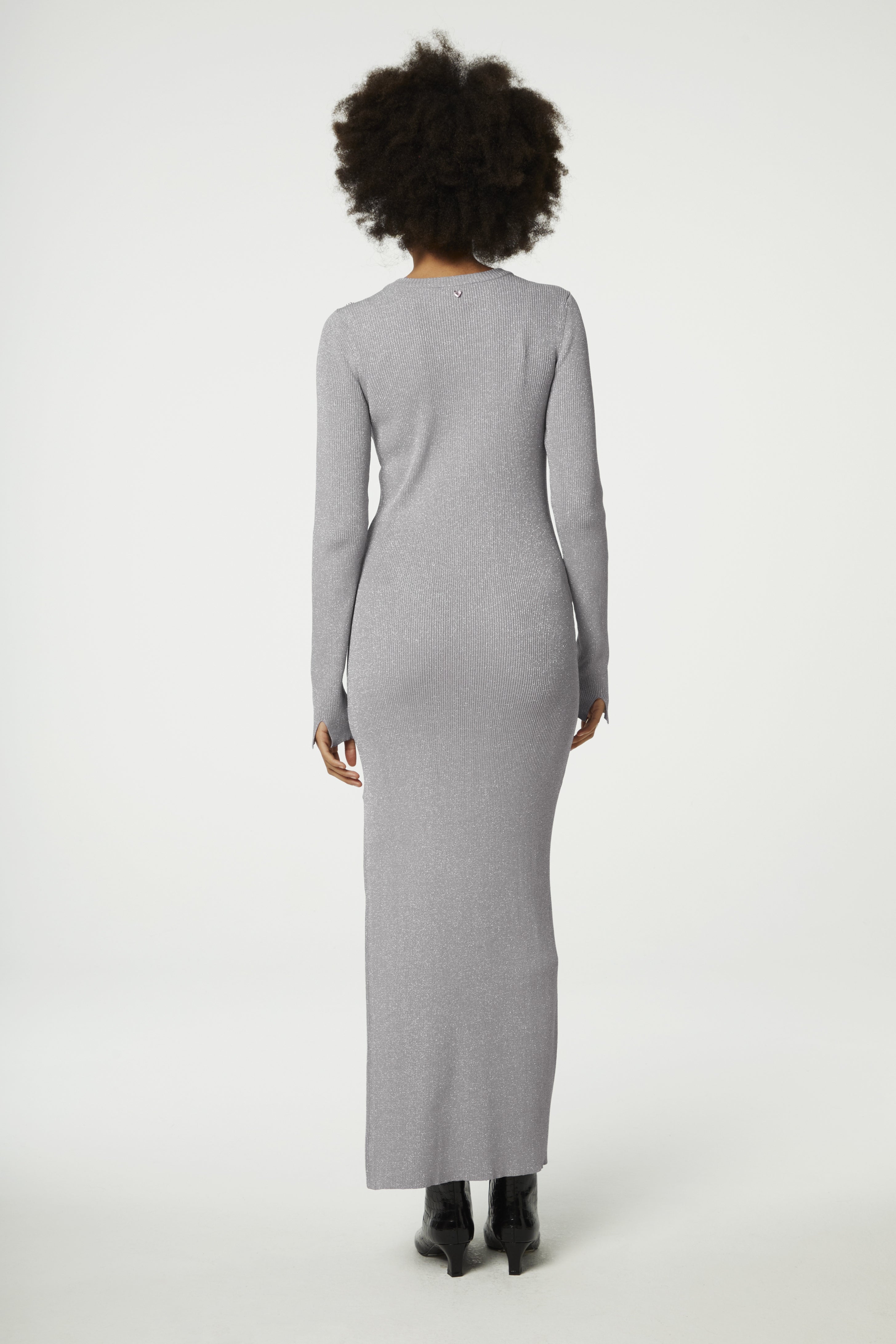 Dieses graue Damenmaxikleid hat eine figurbetonte Passform, lange Ärmel und drei silberne Knöpfe an der linken Schulter. Hergestellt aus Viskose und Nylon, ist es das perfekte lange Kleid – eine essentielle Ergänzung für Ihre Garderobe.