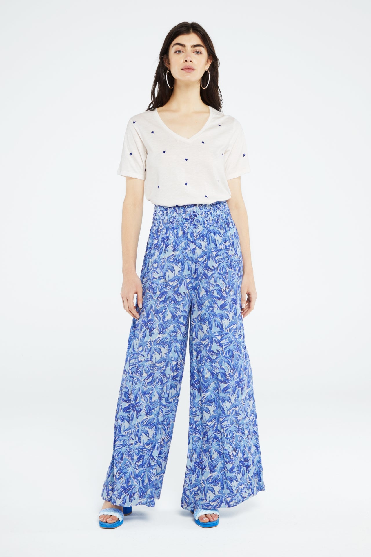 Weich fließende Hose mit ausgestelltem Bein und elastischem Taillenbund. Die Palapa Trousers sind mit einem Blue Palmetto Print im Allover-Look ausgeführt und aus 54% LENZING™ ECOVERO™ Viskose gefertigt: luftig, geschmeidig und nachhaltig. LENZING™ und ECOVERO™ sind Markenzeichen der Lenzing AG.