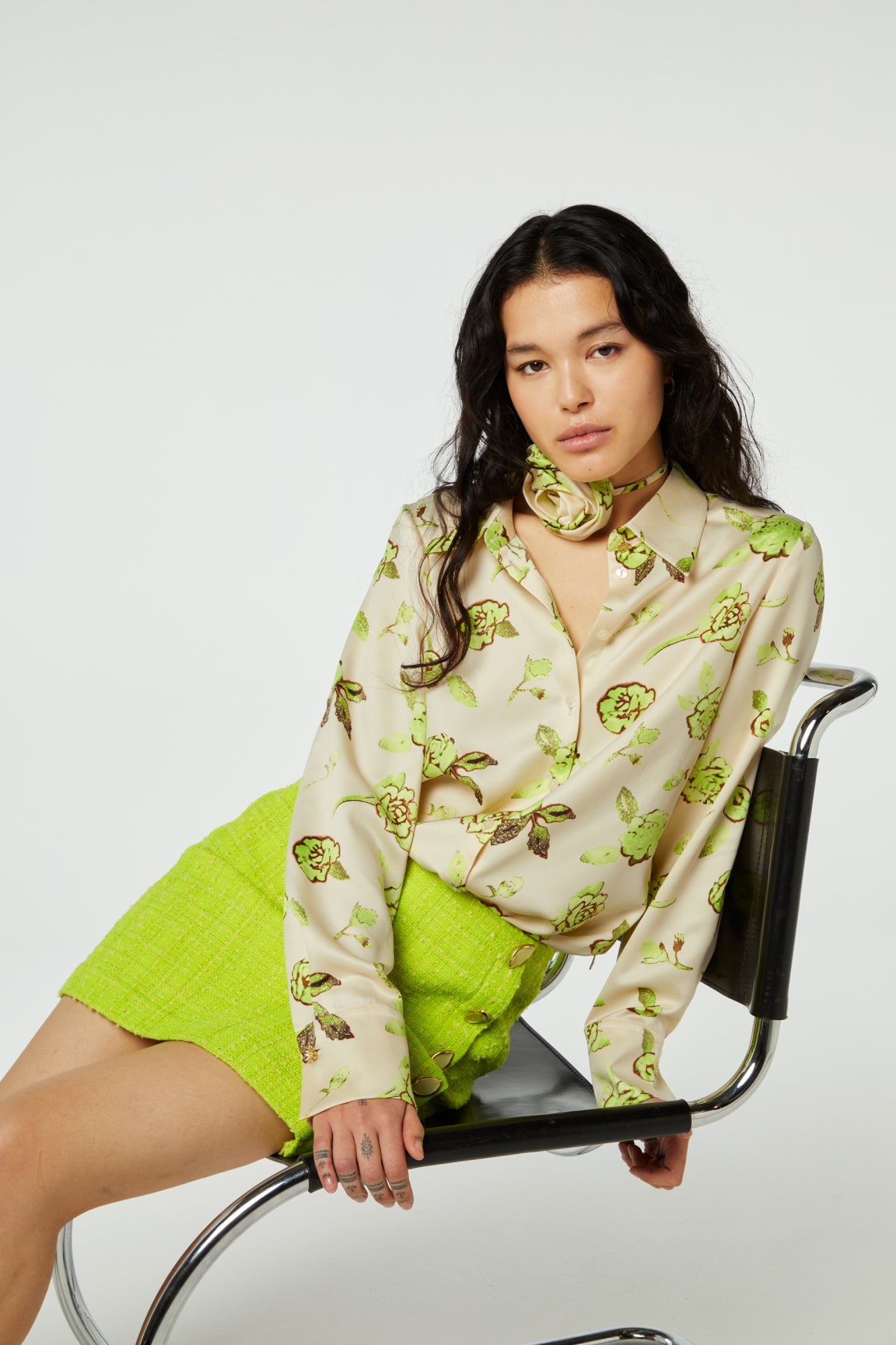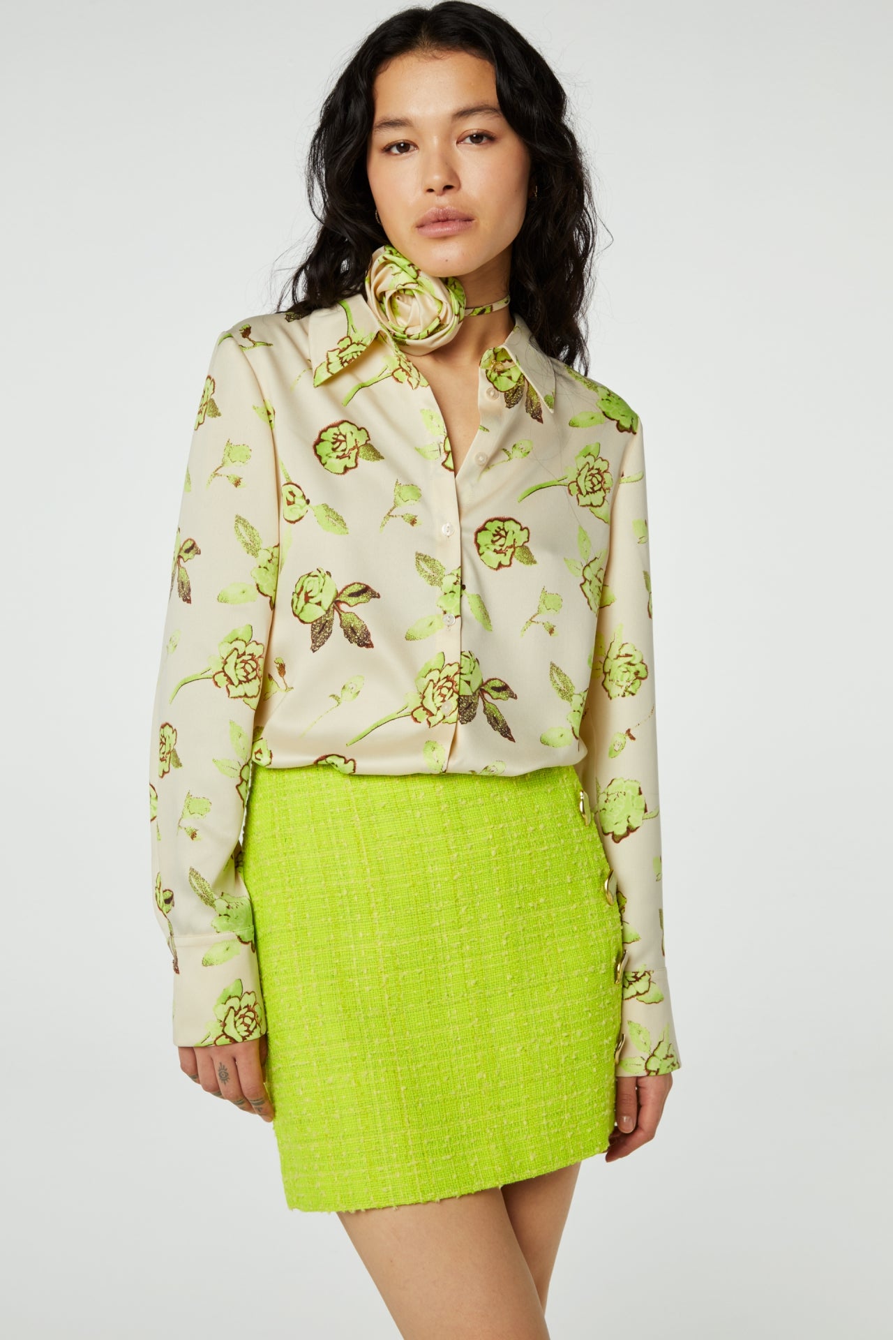 Bluse mit klassischem Kragen und Knopfverschluss. Die Salma Blouse hat Ballonärmel ist mit einem „Versailles“-Alloverdruck versehen.