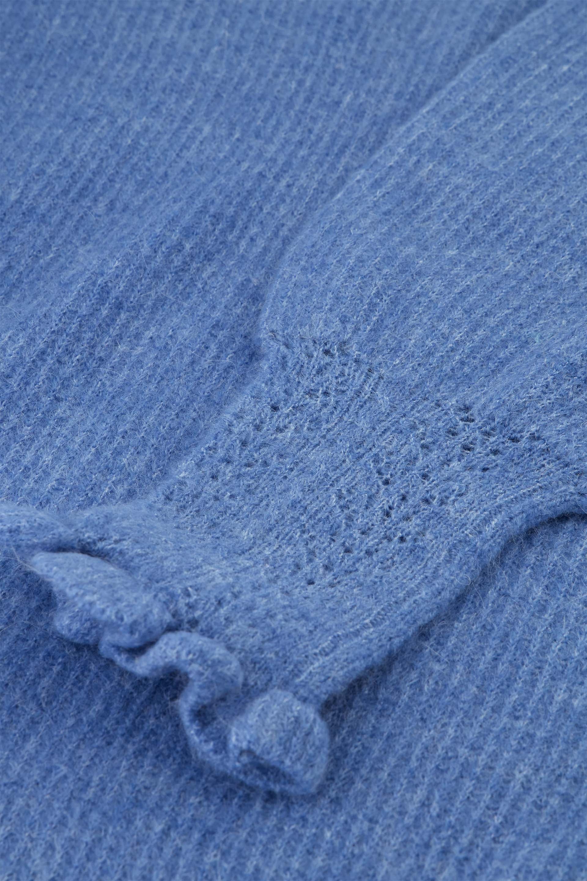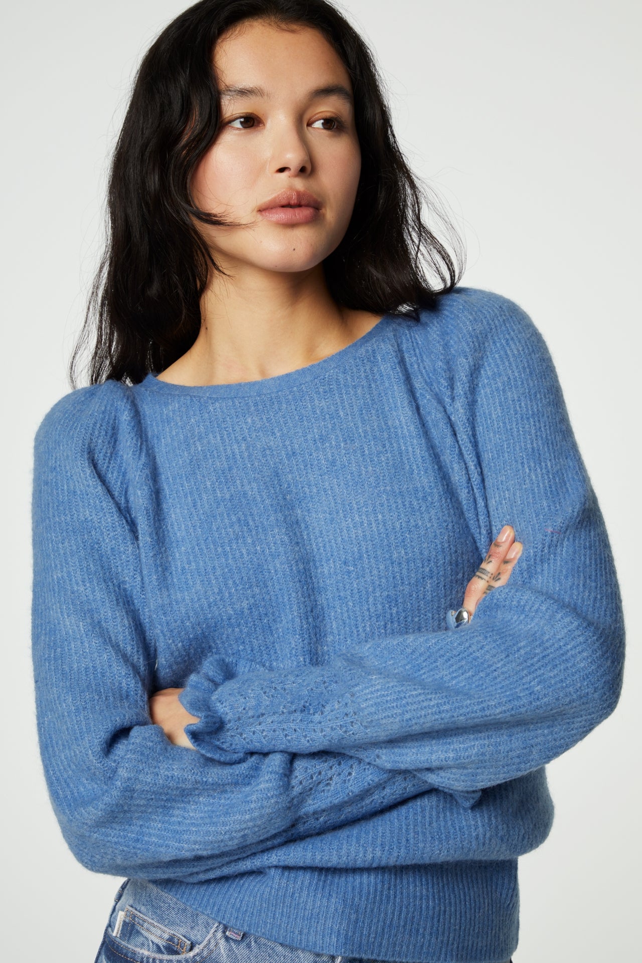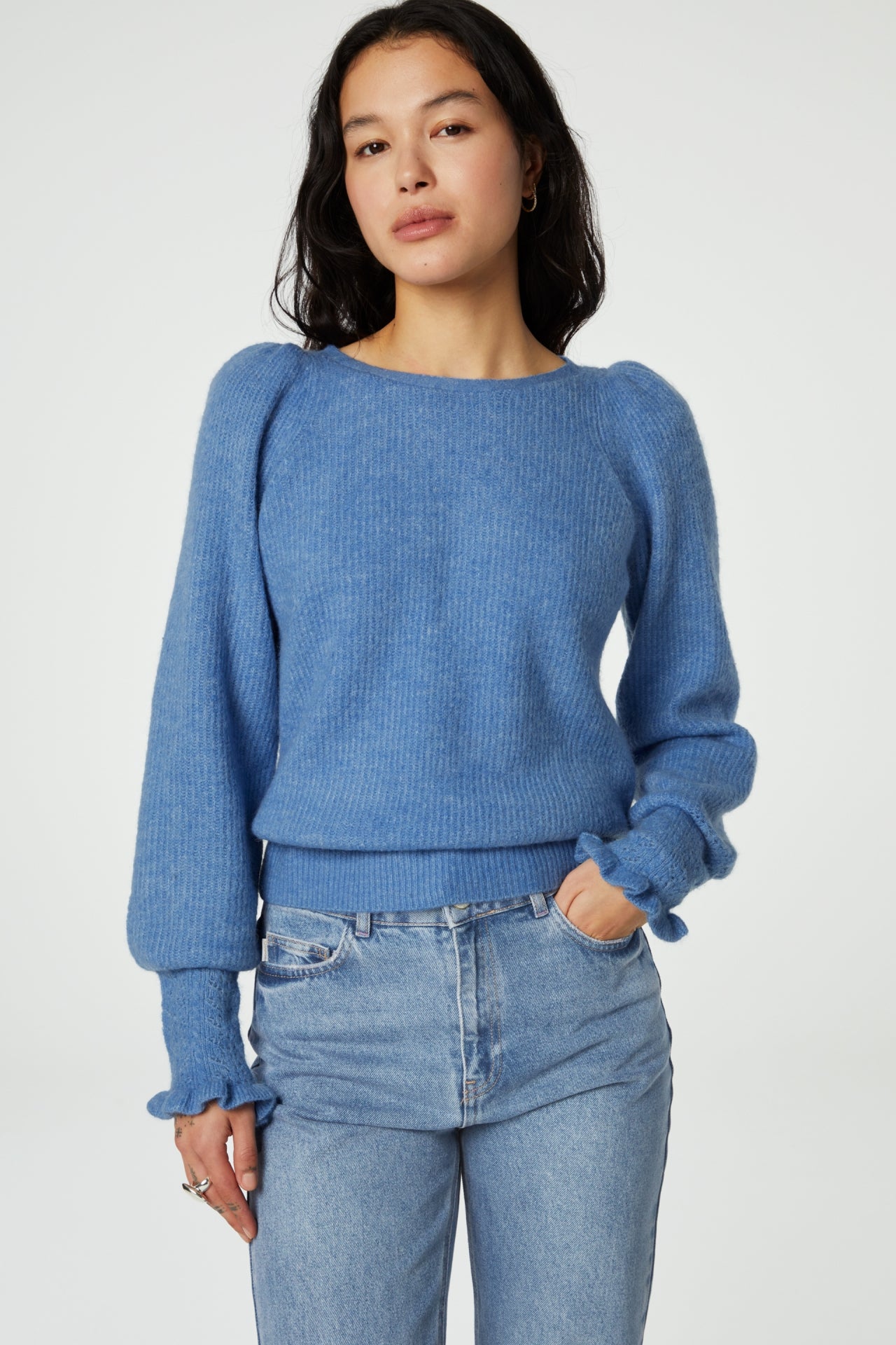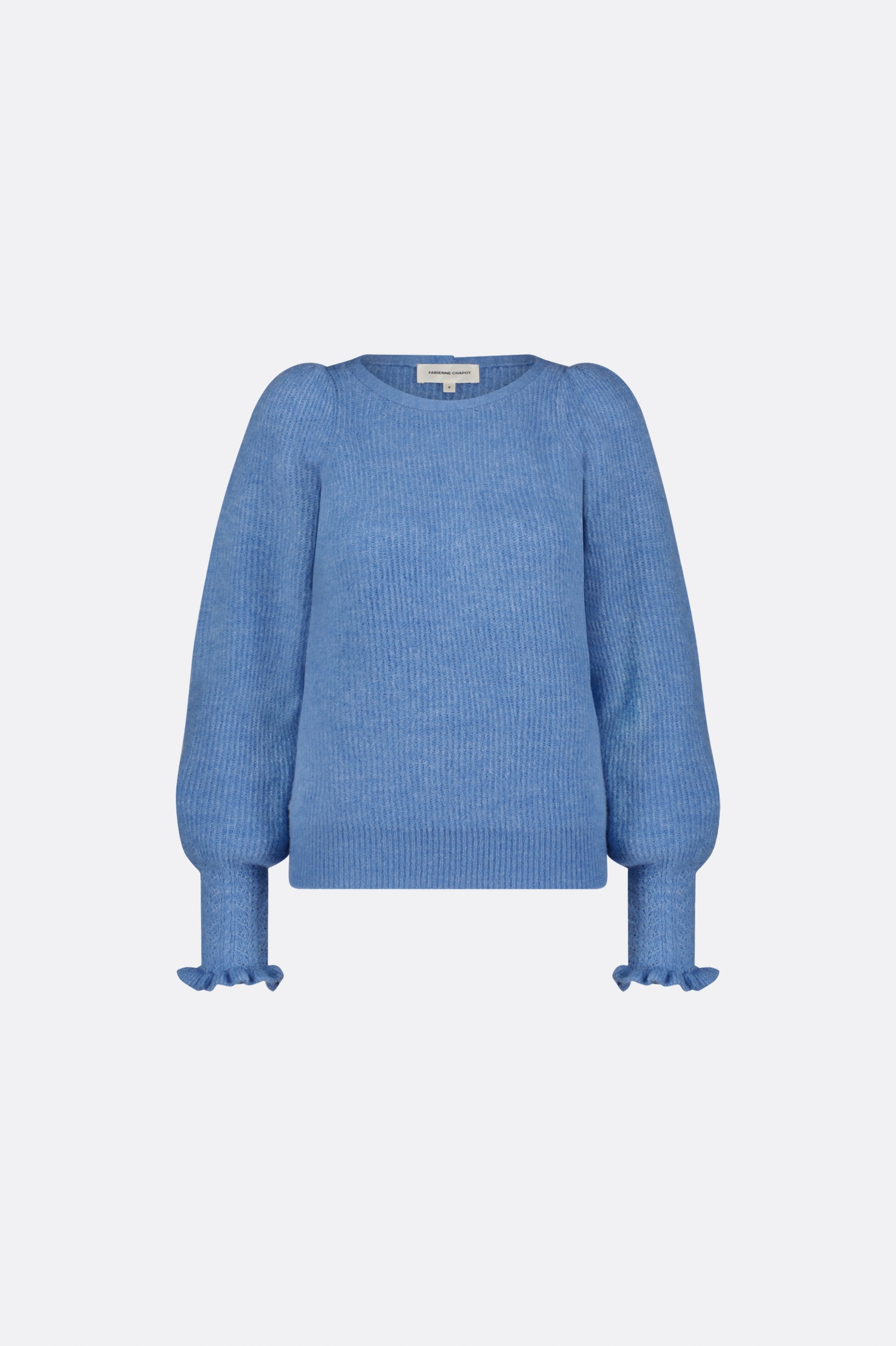 Fijngebreide pullover met een ronde hals en ballonmouwen. Jessica Pullover heeft manchetten met korte ruffles aan de uiteindes.