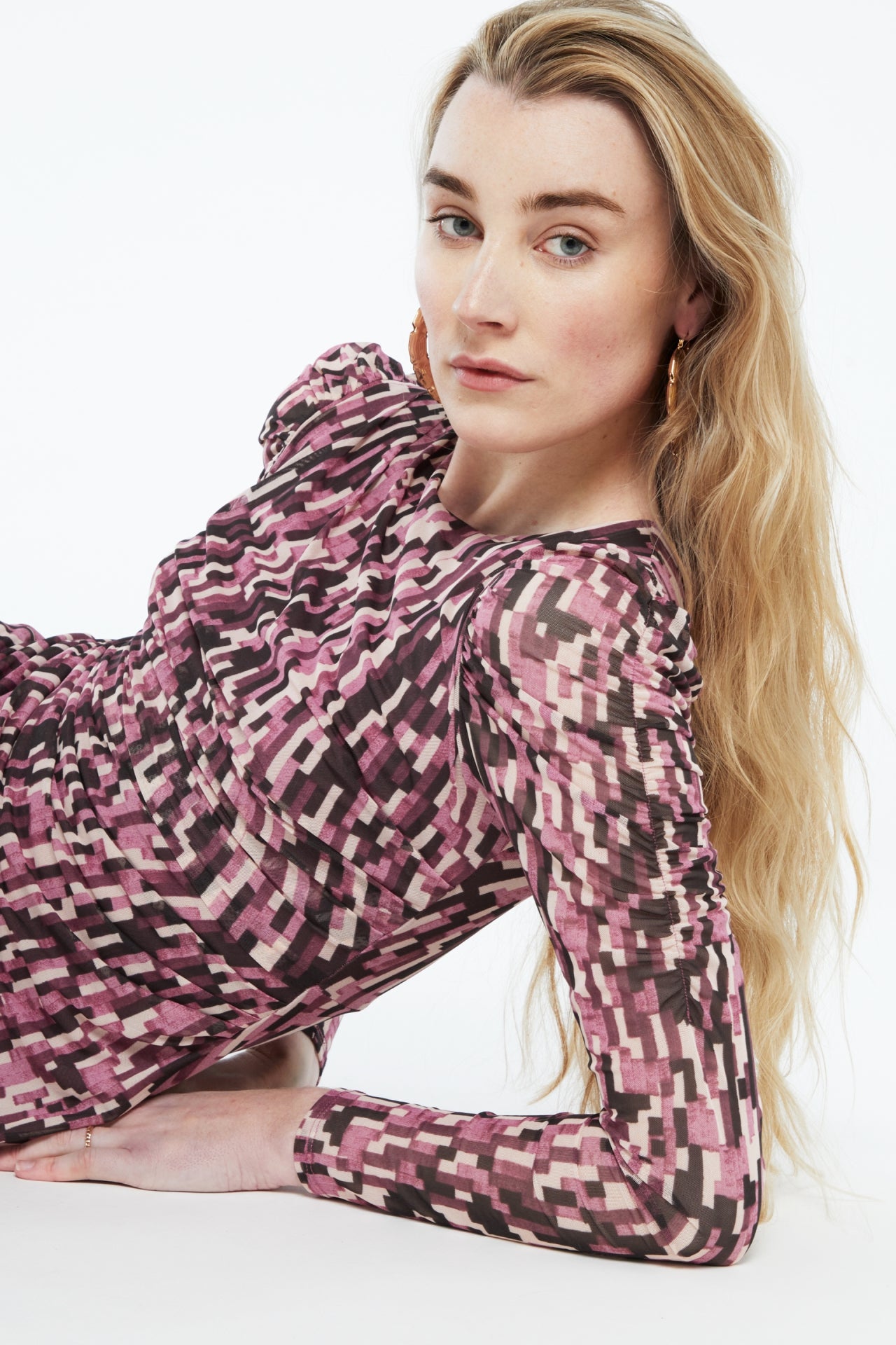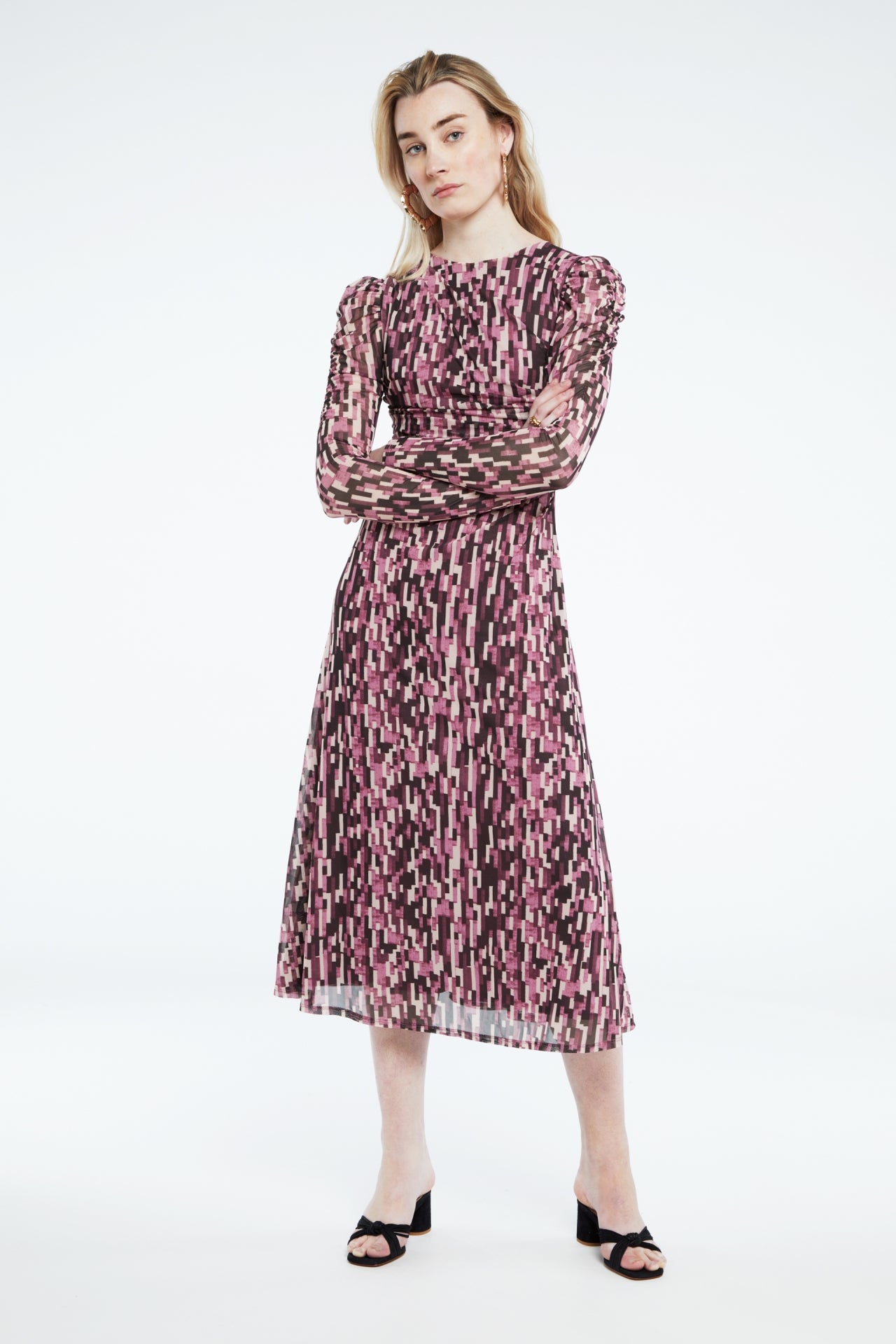 Midi jurk met geplooide mouwen en body. Bella Dress heeft een ronde hals en is gemaakt van Mesh (gerecycled polyester): stretchy, kreukvrij en duurzaam. Ontdek in het care label hoeveel flessen gerecycled zijn voor deze Bella Dress.
