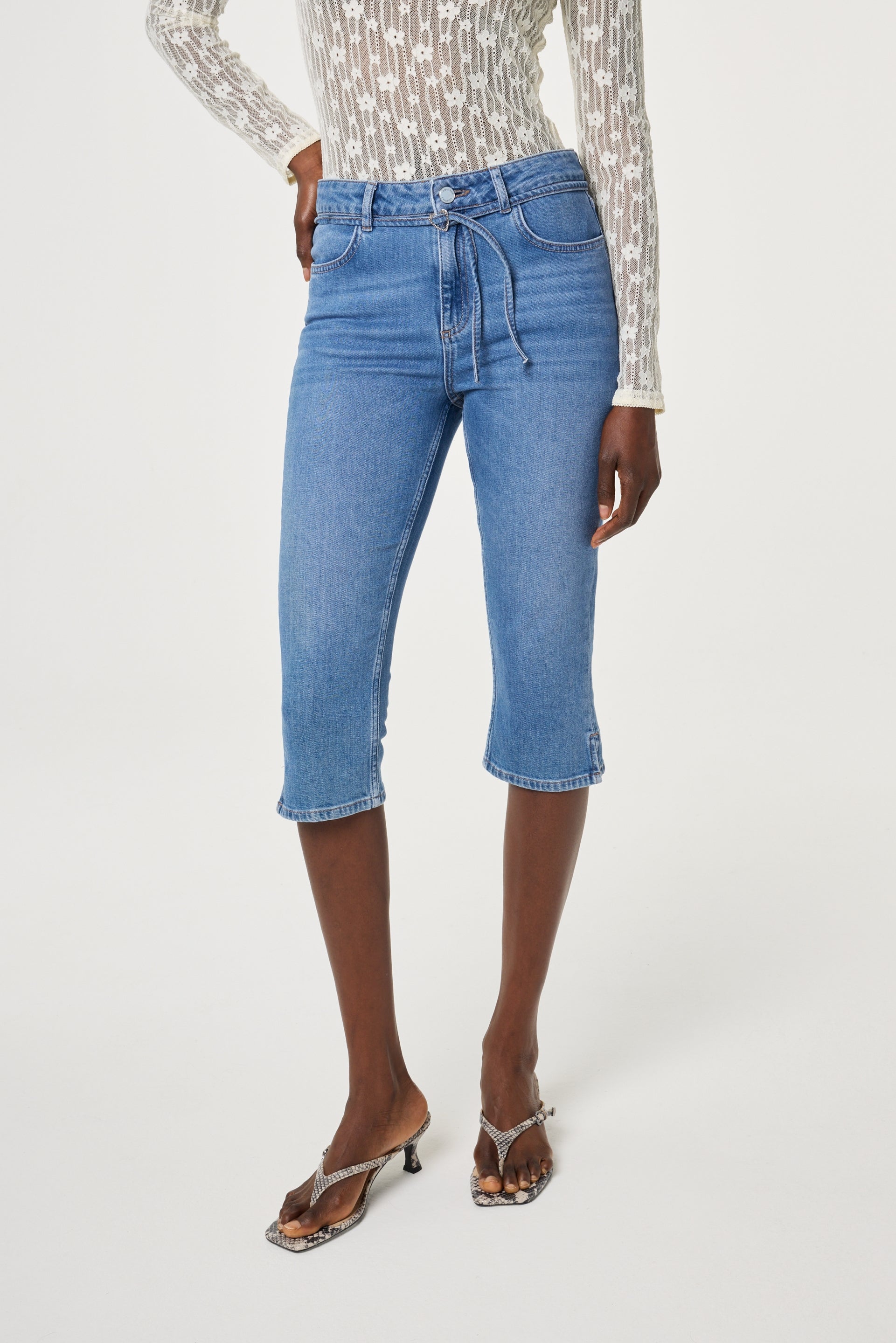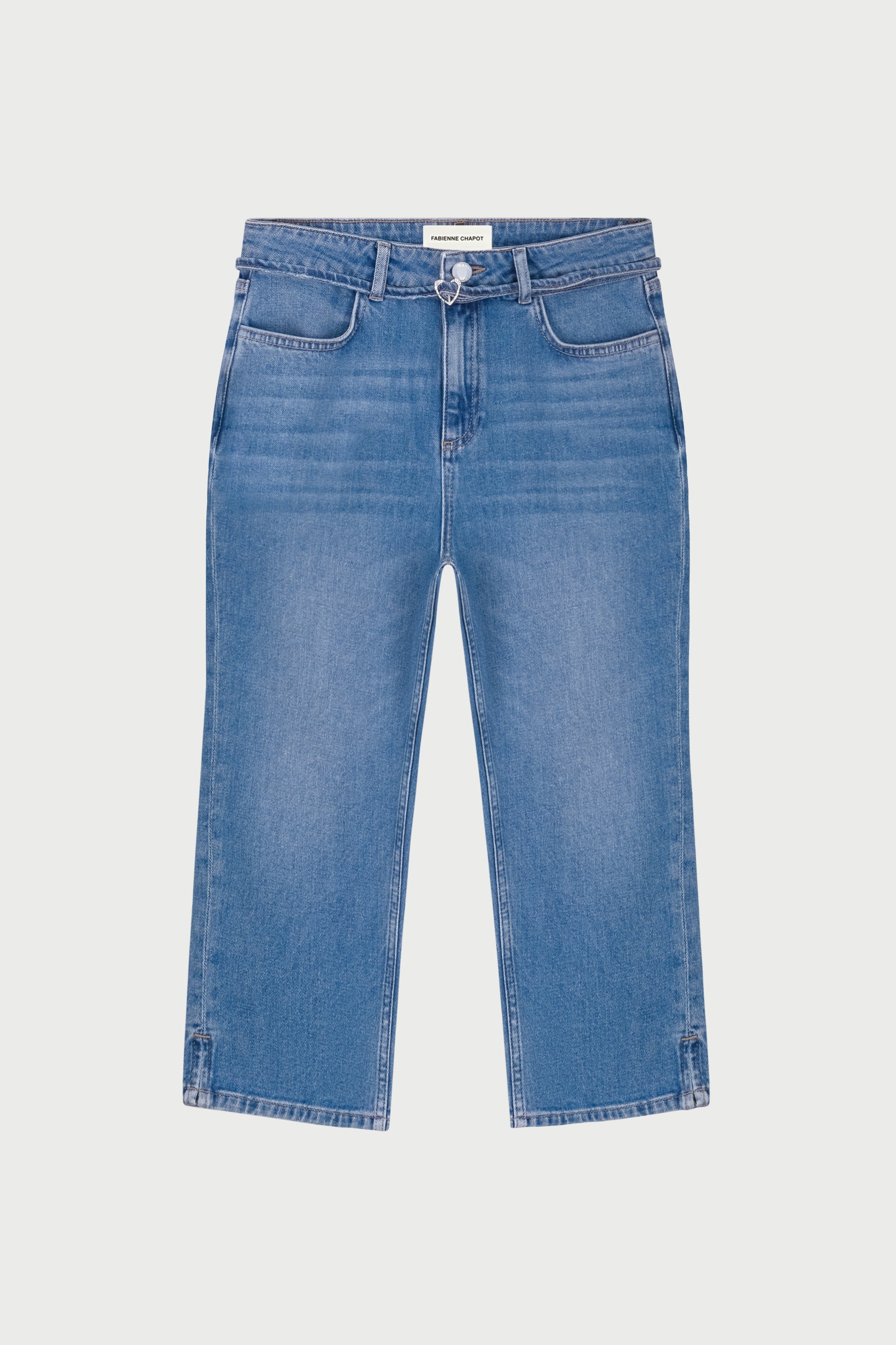 Deze capri-jeans hebben een skinny fit en een klein splitje bij de zoom voor een subtiel, stijlvol detail. Gemaakt van zacht en ademend katoen, met een smalle riem voorzien van een speels hartdetail voor een charmante finishing touch. Perfect voor casual dagen of om je dagelijkse outfit een persoonlijk tintje te geven.