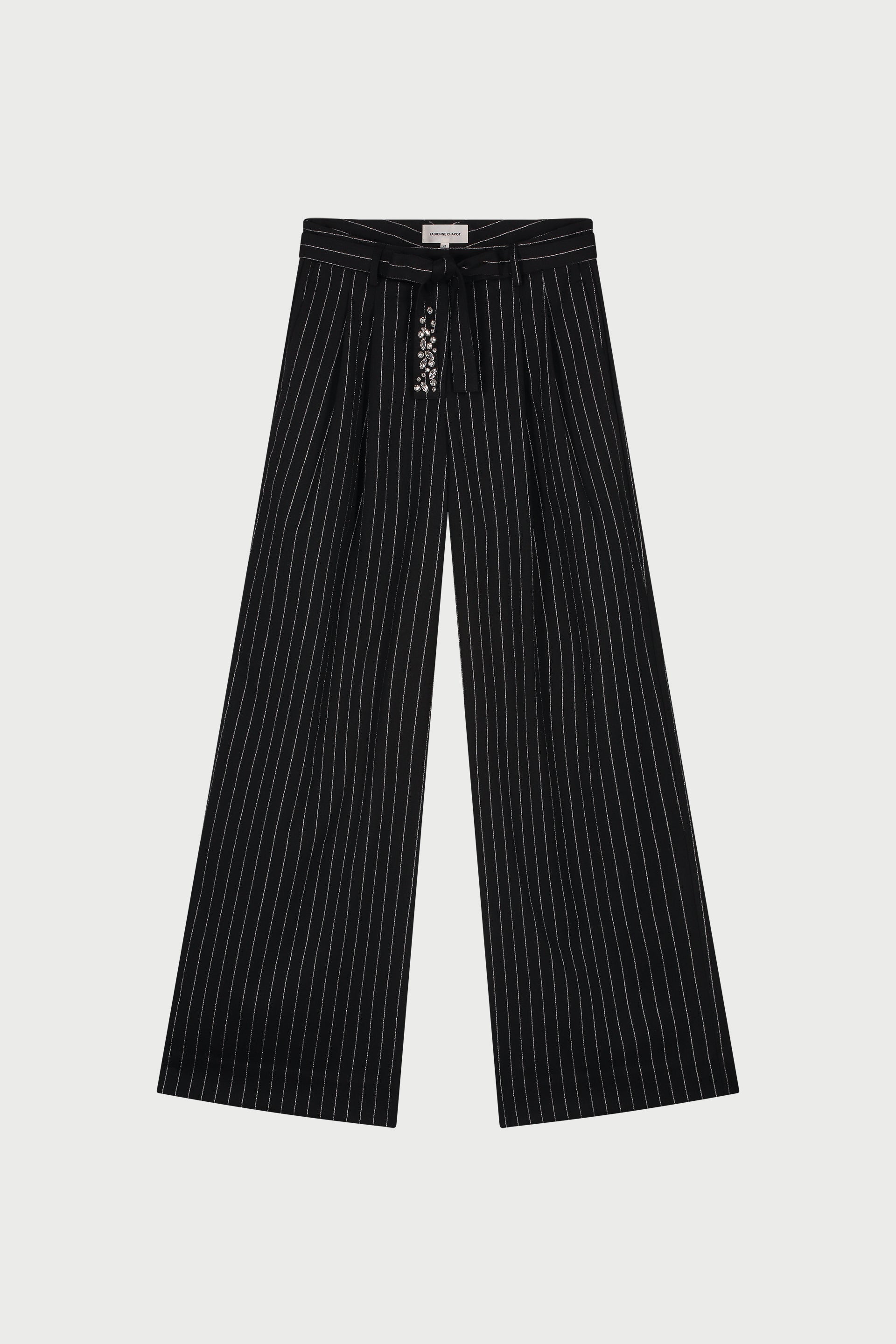 Deze zwarte broek met zilveren streep heeft een wijd uitlopend model. Vanwege het zilveren streepje waar glitter in verwerkt is, zorgt het voor wat extra sprankel in je outfit. Eenvoudig te stylen voor een relaxte daglook of voor een opvallende avondoutfit.