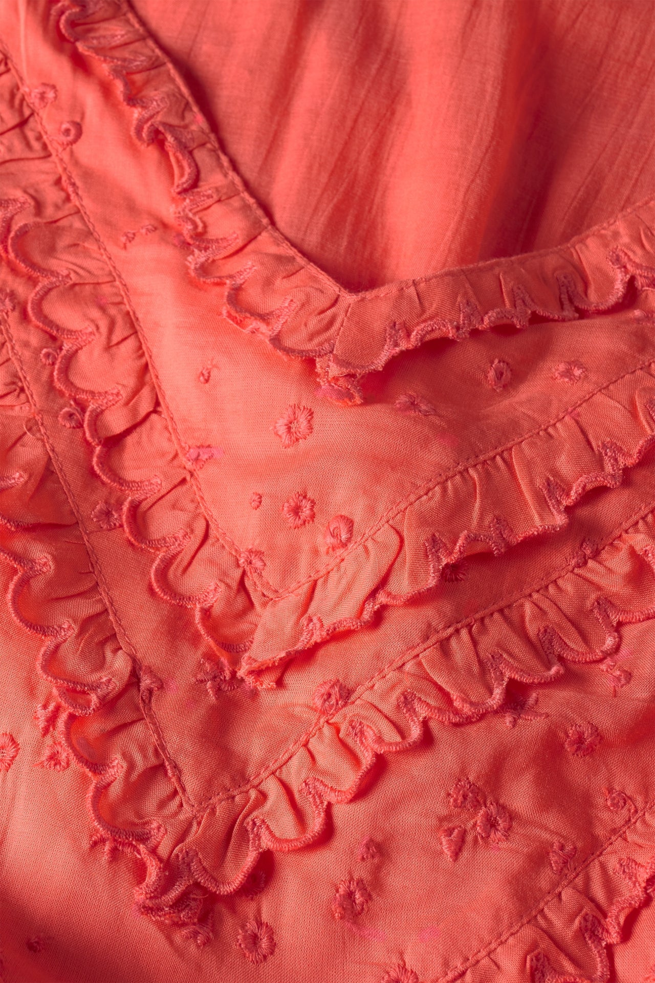Korte jurk met wijde V-hals en korte mouwen. Crissy Dress heeft een ceintuurstrik en ruffle details op de romp, mouwen en aan de onderkant.