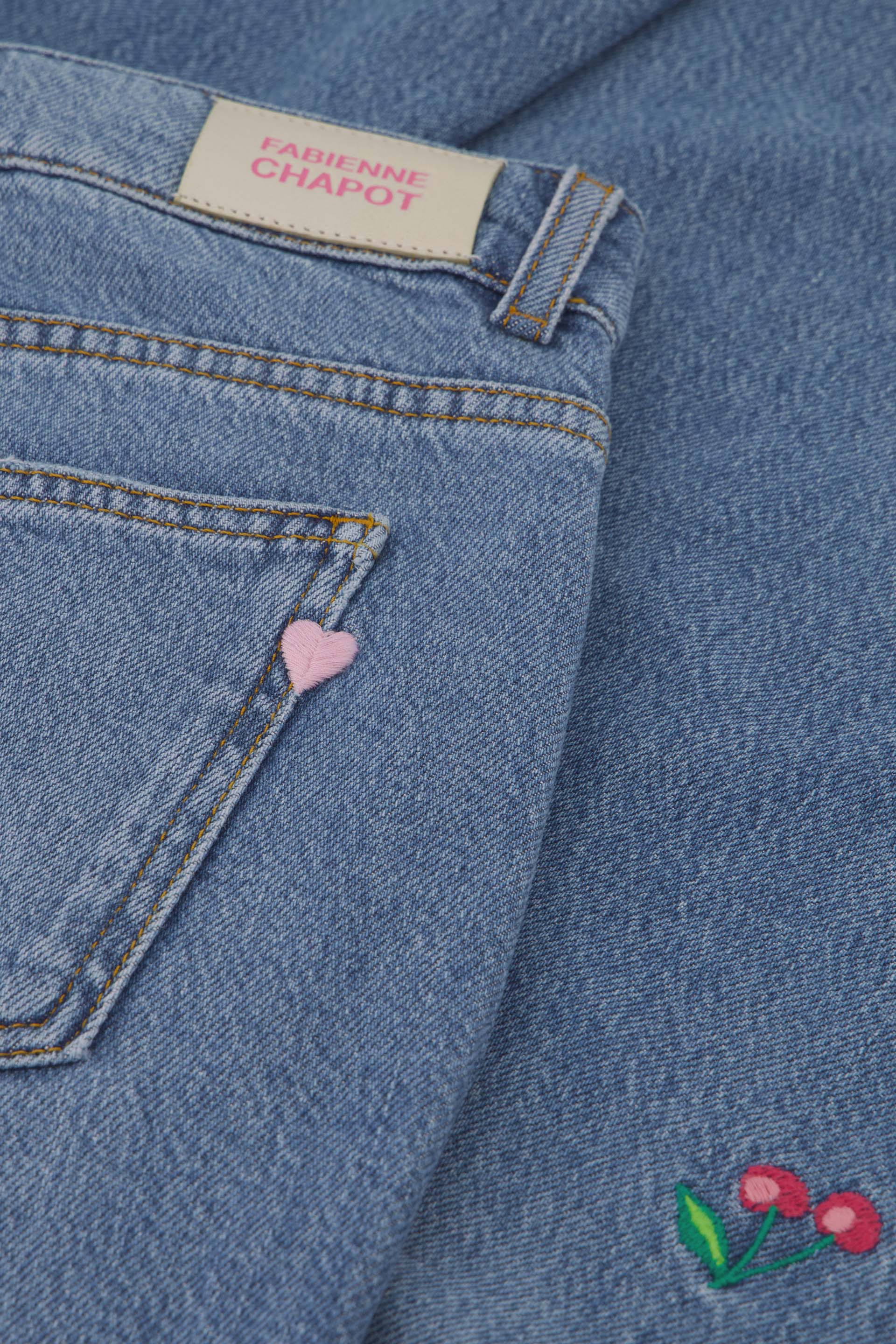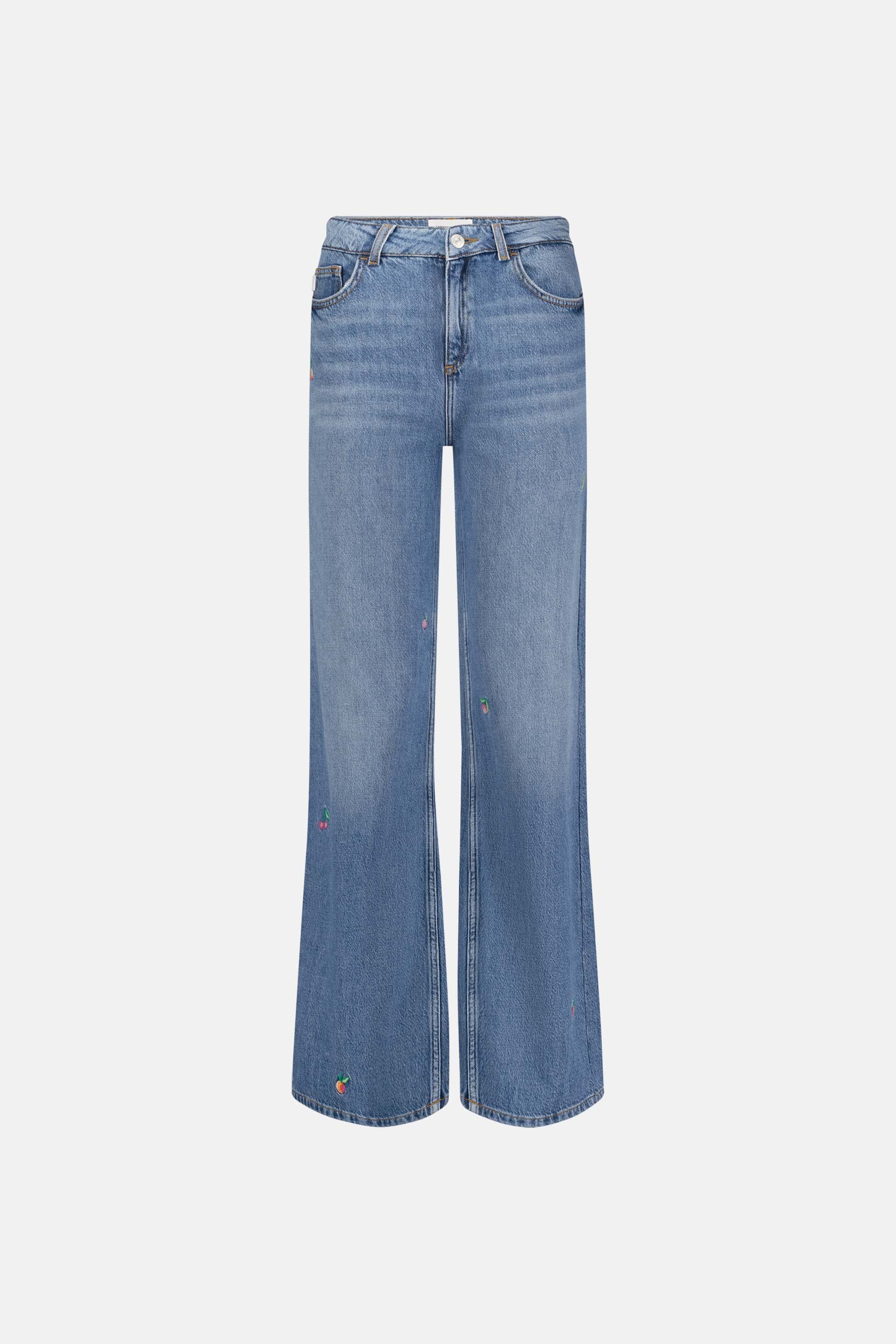 Deze middenblauwe Wide Leg Jeans heeft een relaxte, flatterende pasvorm met een moderne wijde pijp. Combineer het met een eenvoudige top of trui voor een chique look, perfect voor elke casual gelegenheid.