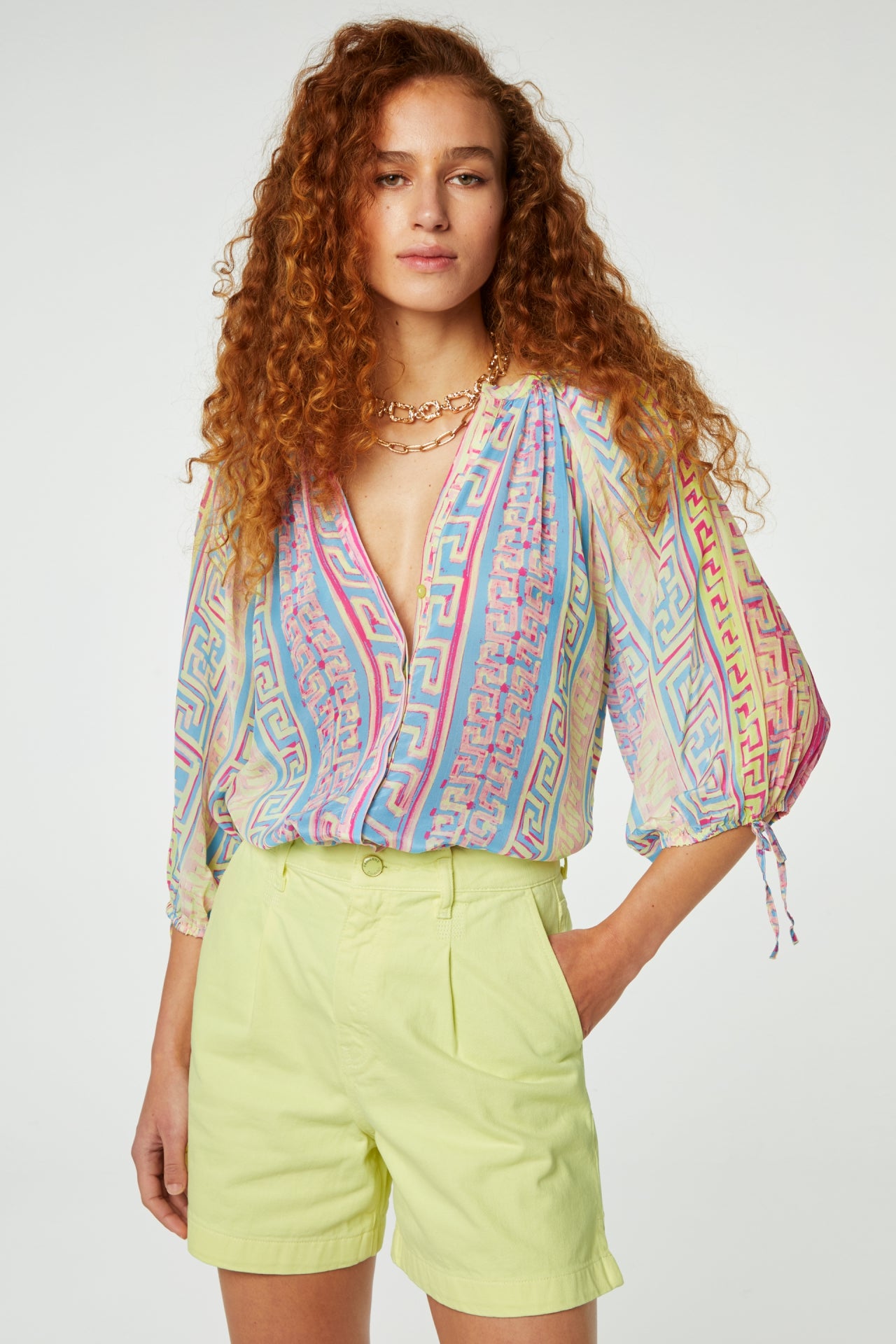 3/5 Cooper Blouse | Pink Sunset/Azure Bl
