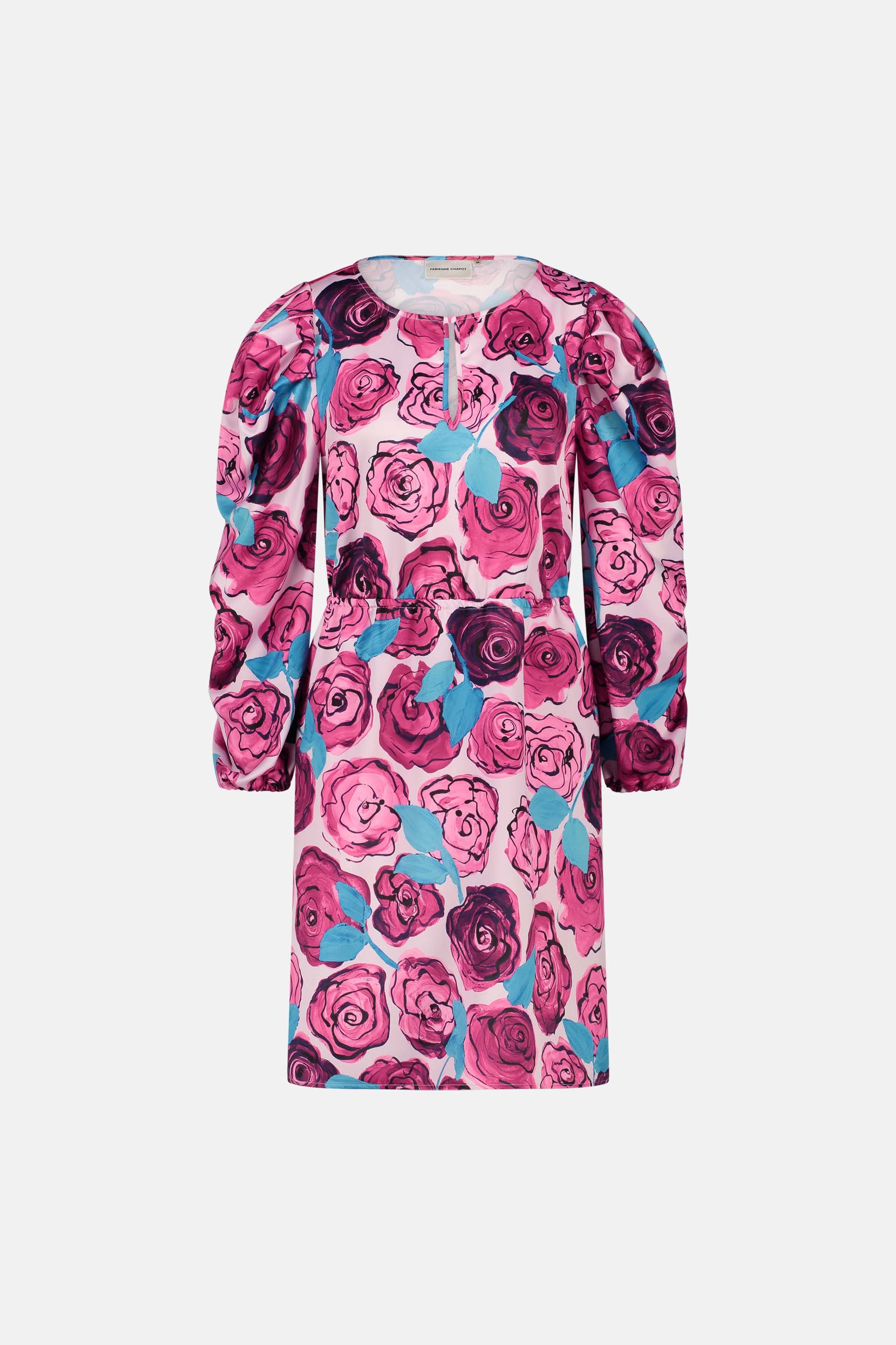 This women's midi dress in pink features long sleeves and an all-over rose print. Crafted from a 100% recycled polyester and is perfect to ad a fun print.