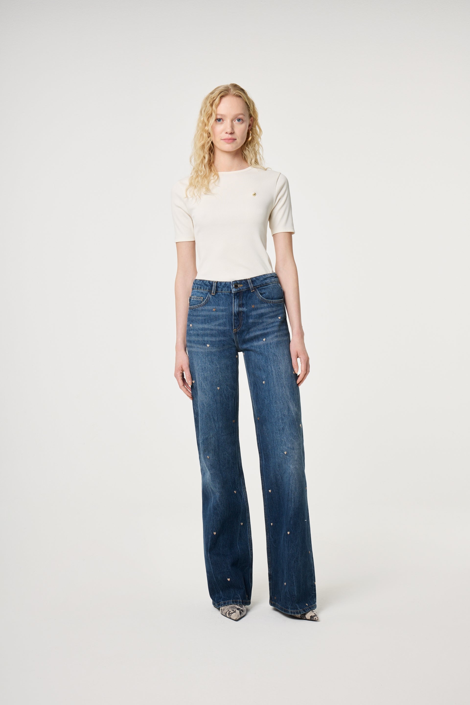 This slim-fit t-shirt in white is made from organic cotton with a touch of elastane, making it comfortable and stretchy. Featuring a heart detail, it is a must-have for your wardrobe.
