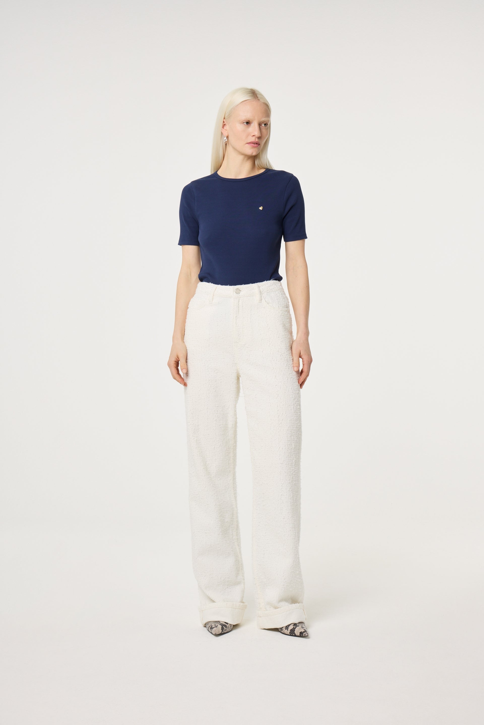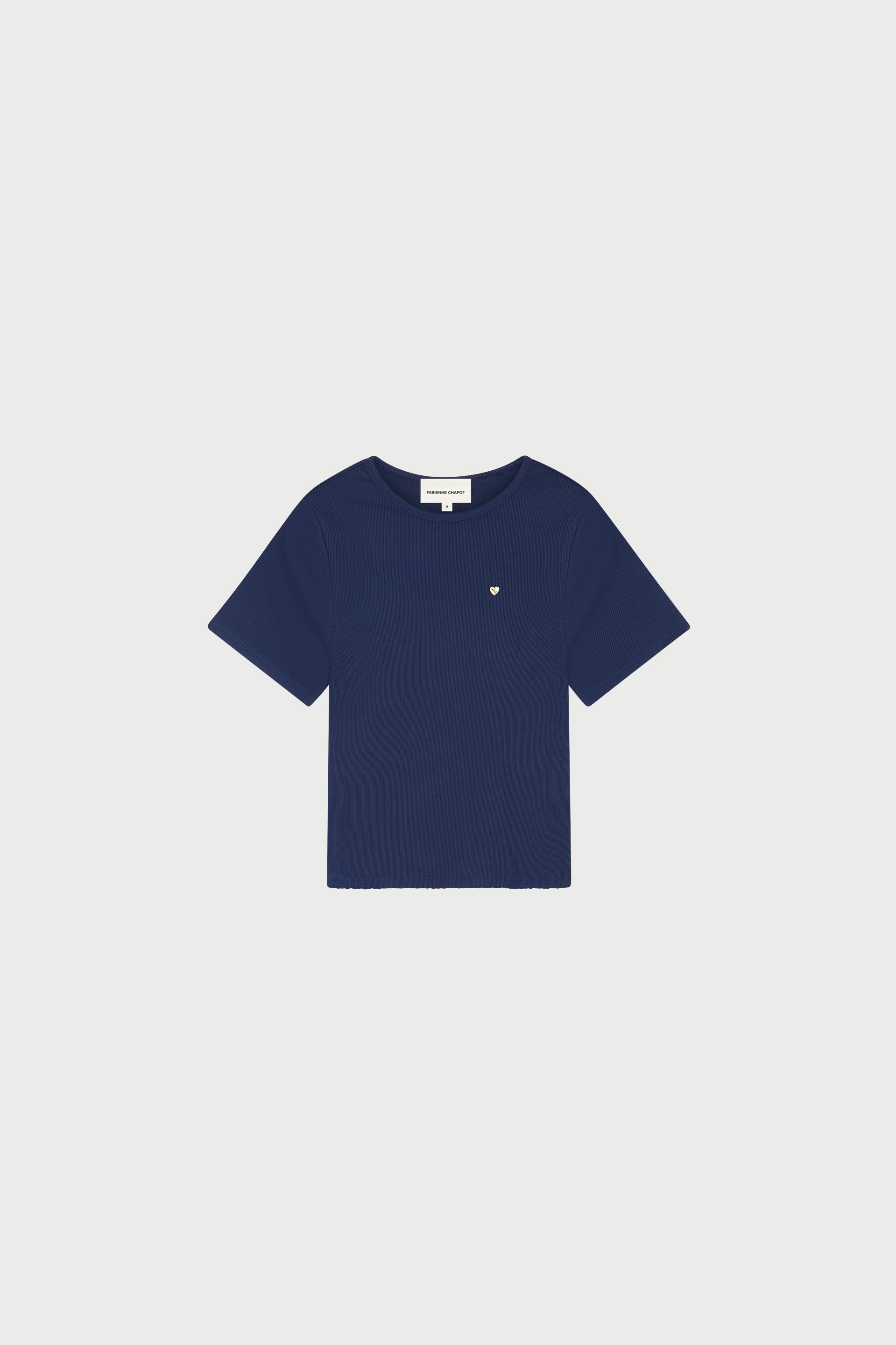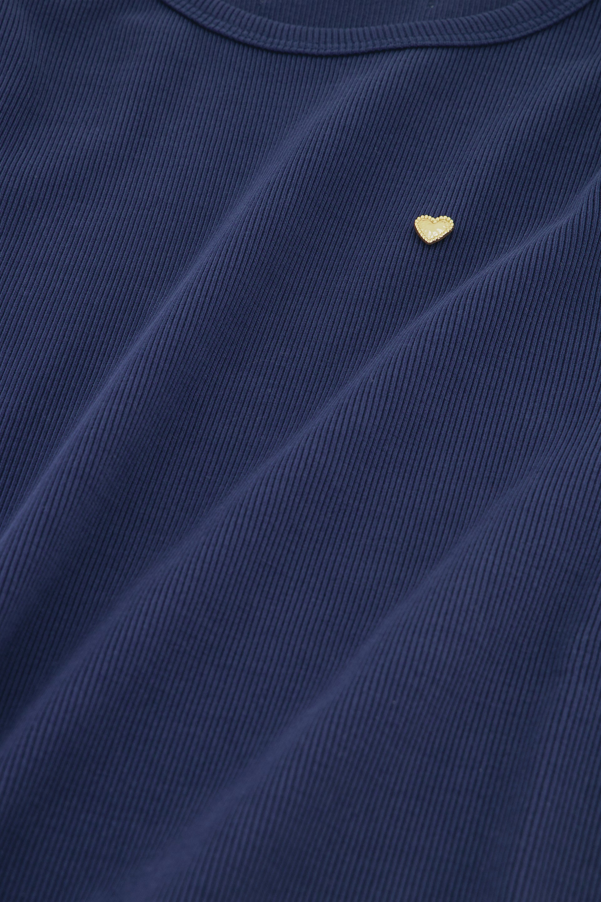 This slim-fit t-shirt in dark blue is made from organic cotton with a touch of elastane, making it comfortable and stretchy. Featuring a heart detail, it is a must-have for your wardrobe.